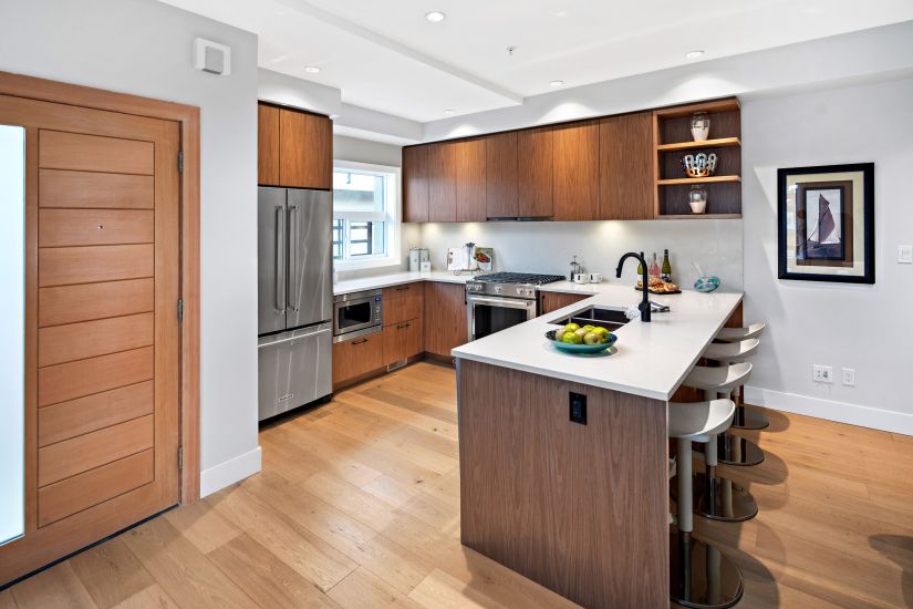 | Remove wall, re-route vacuum through joists to new custom island, new heated tile floors, granite tile counters and backsplash. | |